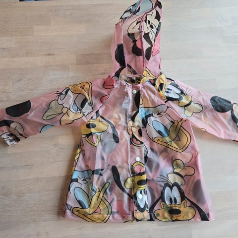 Disney baby regnjakke i str 98. Jakken er foret i vesten, men ikke i armene. Kommer fra røyk- og dyrefritt hjem.