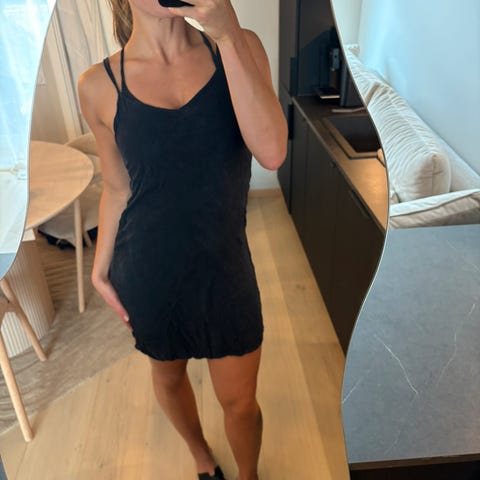 Slip ankle dress fra Bubbleroom. Fin cowl neck foran, justerbare stropper. Flowy materiale, med masse små paljetter❤️ ny med lappen på aldri brukt. Nypris 649kr.