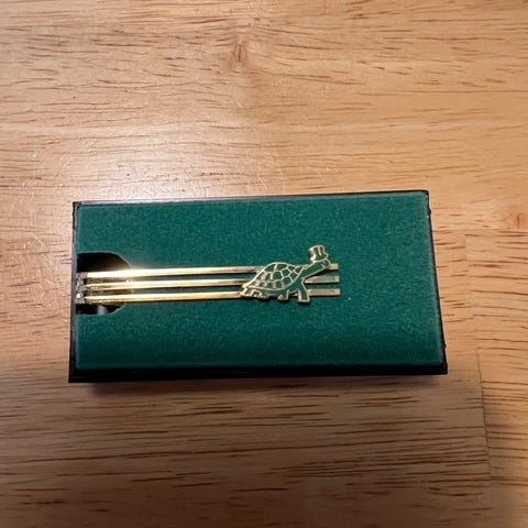 Flott, elegant liten nål. Usikker på om det er dette som heter slipsnål, eller om den har en annen funksjon. Stemplet med Am.Double. Vintage. 4 cm høy.