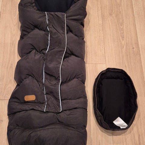 Posen med dun i overdelen og ull i underdelen. Den har to overdeler, en kortere og en lengre, som gir posen Lang brukstid, til ca 6 år. Medfølger også pingvinkysen og den originale emballasjen.