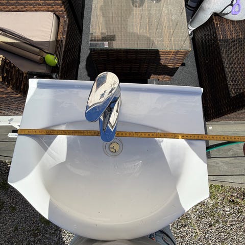Helstøpt baderomservant. Bredde 80 cm. Dybde 50 cm med servant batteri.