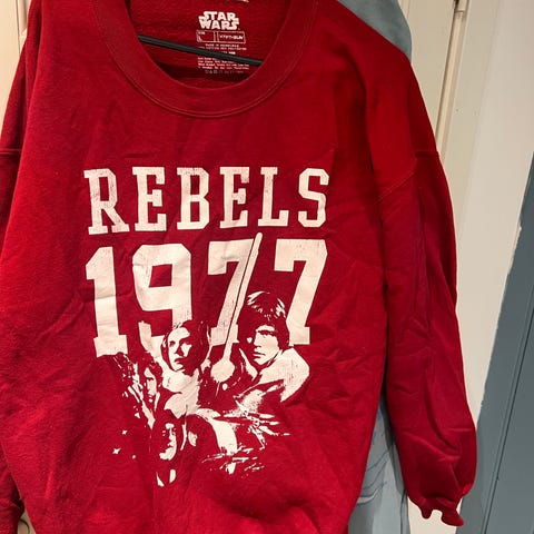Star Wars regntøy/regnkappe i størrelse M for menn. Fargen er grå med karakteristisk Star Wars-design. For ungdom, voksen eller for samler.