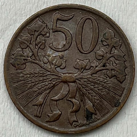 Tsjekkoslovakia 50 Haléř Mynt 1922 Metall