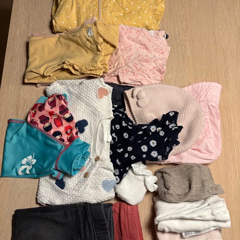 Klespakke med ca20plagg selges til en jente på 0-3måneder.