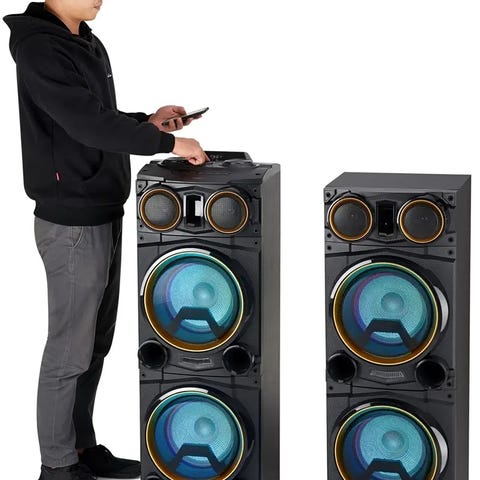 Partyhögtalare som levererar 200W rå kraft genom två 12-tums element, upp till 7 timmars batteritid, flera EQ-lägen, möjlighet att koppla ihop två högtalare för stereoljud, och en LED-ljusshow som följer musiken - allt i ett snyggt och portabelt paket!