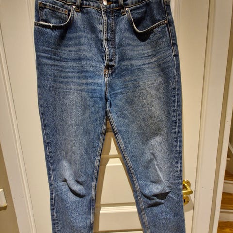 Superfin kort og vid bukse. Normal til høy i livet, stretchy og kule baklommer. Sitter utrolig fint på. Ytterbenslengde 88 cm, innerbenslengde 57 cm, livvidde flatt 38 cm