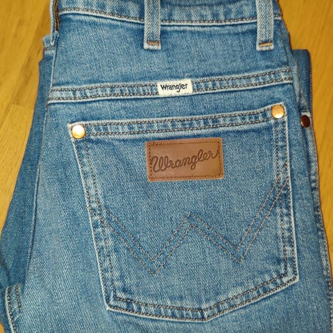Pent brukte jeans fra Wrangler. Stretch gjør at denne sitter veldig fint på og er behagelig å gå med.