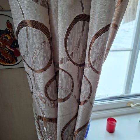 4 gardin lengder,(cream farget m/mønster),140x150=200,-.