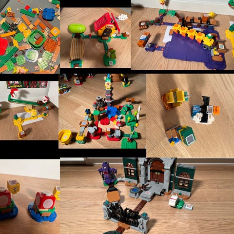 Men selger en haug av deler fra Lego Mario som vi ikke vet hva hører til. Alle delene er pent brukt og det pølser med en drakt, startrør og sluttstang.