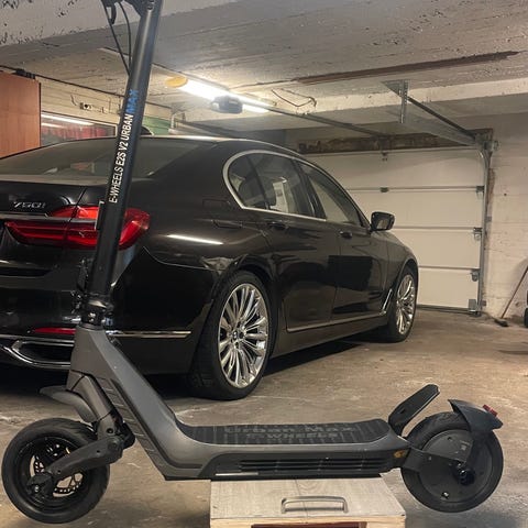En som skrur litt , forstår seg på el -sparkesykkel .