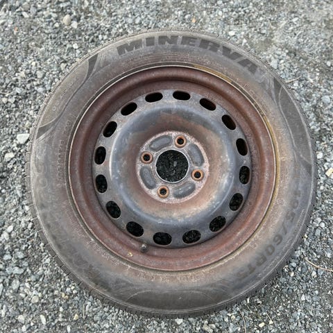 4 stykk Dekk og felger selges har stått på Mitsubishi lancer. Bolter følger med