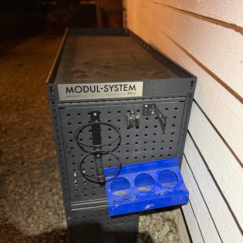 Selger komplett sett med hobbybenk med oppbevaring og taklamper