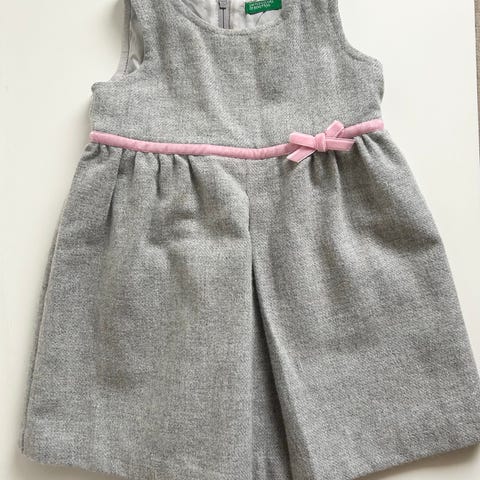 Søt kjole i ullblanding fra United Colors of Benetton. Str 68. Grå med rosa detaljer.