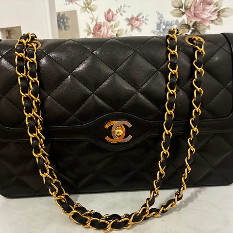 Sjelden og lekker dobbelt-flap Chanel i nydelig, dempet blåfarge.
