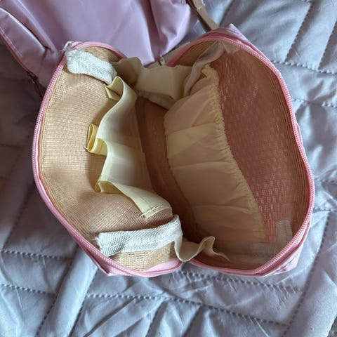 En veldig fin og pent brukt bleie veske med mange avdelinger for ulike utstyr.