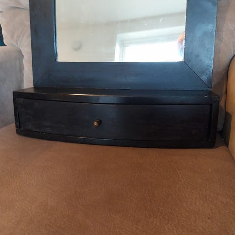 Pent og solid speil fra Holtan interiør, kjøpt i en interiørbutikk i Tønsberg . Noen få små bruksmerker.