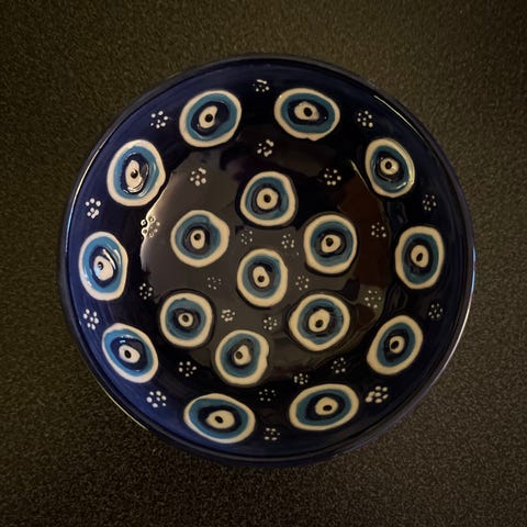 Håndmalt motiv fra engelsk landsby. Ingen skader, som ny. Høyde 6 cm, diameter 23 cm.