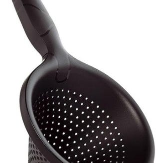 Dette er et vintage dørslag/sil fra Tupperware, i en jaditegrønn farge.