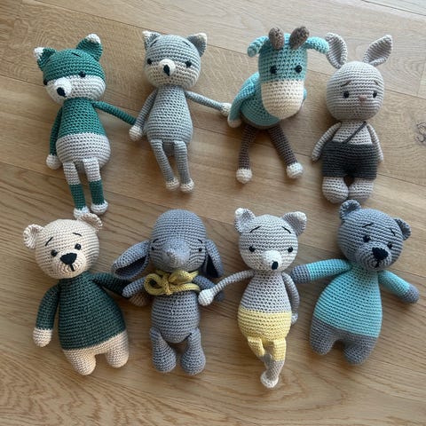 Jeg lager både enkle bamser (fra 600 kr) og mer detaljerte med klær og tilbehør (fra 700–800 kr).