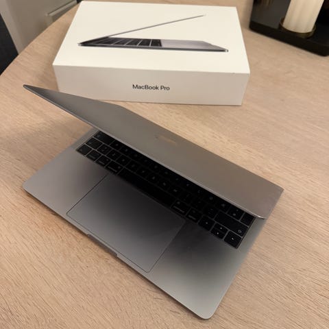 Pent brukt MacBook Pro 13 tommer selges. Den ble kjøpt på Power i januar 2019.