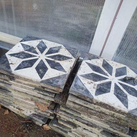 Flotte dekorfliser i blågrått og gull/bronsefarge. Mønsteret heter «Iris.» Har 8 stk. med størrelse 7 x 20 cm. (Tykkelse 6 mm). Pris er for alle. Kan sendes med PostNord for kr 69,-.