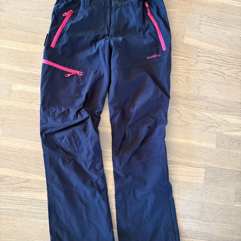 O'Neill skibukse for dame i størrelse M, farget lilla. Laget av materiale egnet for vintersport, med glidelåslommer og justerbar midje. Buksen har forsterkede mansjetter nederst og innergamasjer for å holde snø ute. Designet med O'Neill-logo på siden.