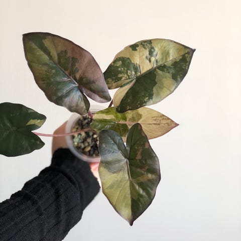 Den har gode gener og variegering som man ser på bladene. Den har også sterke røtter som er ferdig rotet og er klar til å potte om. 🪴