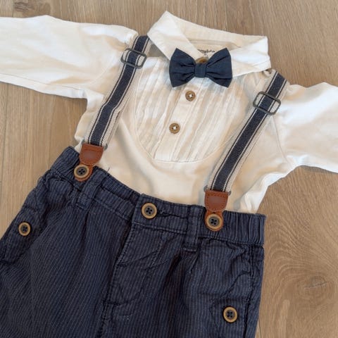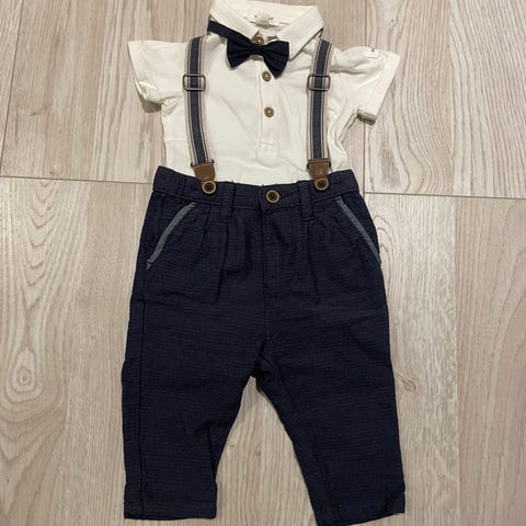 Selger et nydelig sett fra Newbie i størrelse 62, bestående av skjortebody og bukse. Brukt kun én gang av gutt, fremstår som nytt. Kjøpt ny av meg på Newbie for 648 kr.