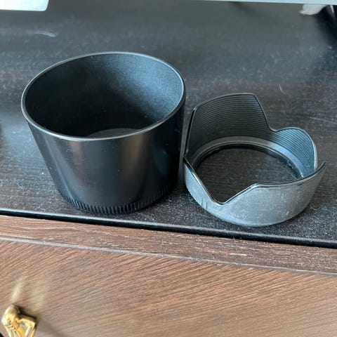 Følger med eske, manualer, linse deksler og solblender.