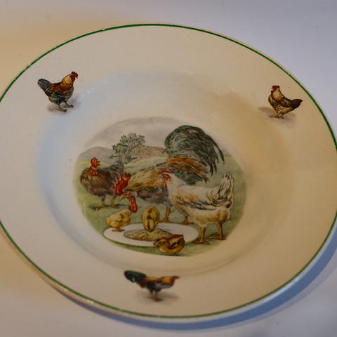 Aldersspor på kanten under og en del prikker i godset fra produksjonen.