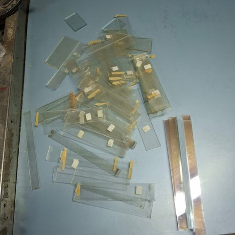Jeg har også to rektangulære glass, disse er helt flate. Hvor de hører hjemme vet jeg ikke. Mål kommer seinere.