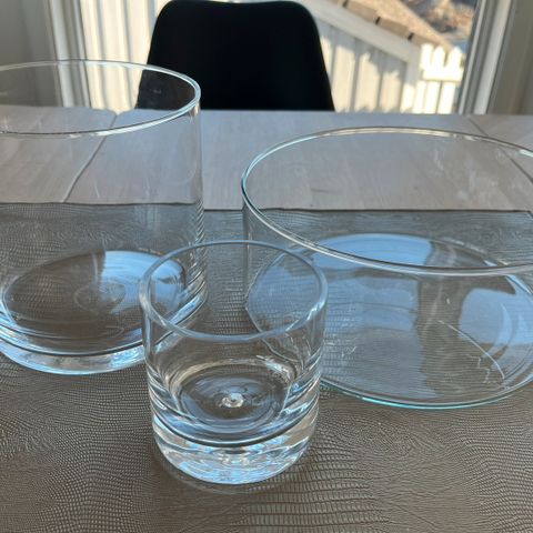Potte, klart glass, glassvase, rund, sirkel, bolle, fat