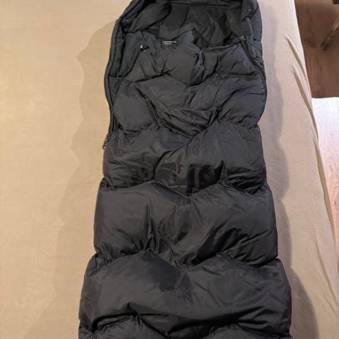 Moderne, vind- og vanntett City vognpose fra Voksi med et fyll i dun og fjær. Den har en sentrert glidelås med vindbeskyttelse og en justerbar hette med et fôr i fleece. Vognposen har sklibeskyttelser på baksiden, en praktisk lomme og reflekterende detaljer.