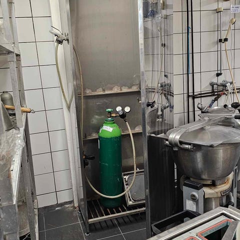AGA gassflaske laget av metall i grå farge. Flasken er egnet for lagring og transport av gass, med en robust konstruksjon som sikrer sikker bruk. Den har en ventil for enkel åpning og lukking, ideell for både privat og kommersiell bruk.