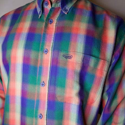 1 kraftig og tykk herre skjorte i BOMULL. Størrelsen er M. Bredden under ermene ca 59 cm, bredde nederst er ca 61 cm, veier 415 gram. Skjorten har store ruter. Rød nyanse farger er mest dominerende, også grønn. Merkelappen øverst inni «BOOGIE LEISURE WEAR». Fargen kan være litt forskjellig på bildene. Skjorten er Som Ny!! Meget lite brukt. Kan ikke se at den er brukt.