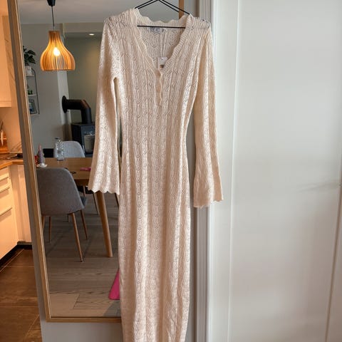 Selger en ny, håndlaget heklet kjole som ble kjøpt i Tyrkia i fjor. Ubrukt. Det står ikke størrelse på kjolen, men jeg vil anslå at den passer XS, S eller en smal M.