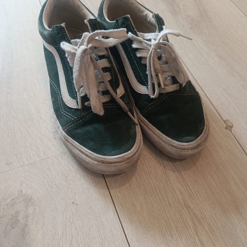 Veldig fine Vans SK8 sko sr 39. Brukt 8 - 10 ganger, helt fin såle. Olivengrønn farge (eller kalamata som det sto på esken). Kombi semsket skinn og tekstil.