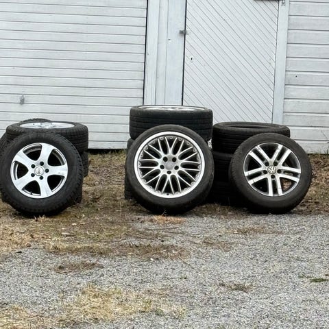 4 originale Audi felger med gamle, men så og si ubrukte dekk.