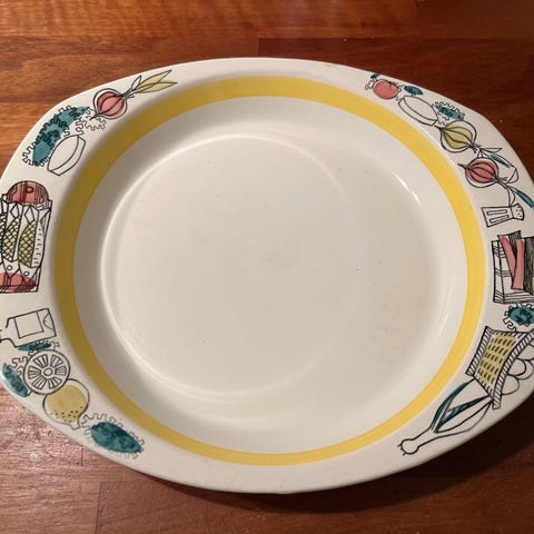 Vintage retro serveringsfat fra Stavangerflint. Det største fatet har en lengde på 40 cm, ideelt for servering av større retter. Det enkle og elegante designet passer godt til ulike borddekkinger og anledninger.