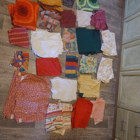 Stoffer store og små for patchwork, klær, lapping osv