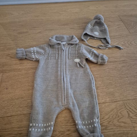 Pent brukt Lillelam ulldress og lue, 62 cm