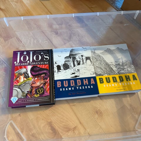 Selger fleire japanske manga bøker av bla. Demon Slayer, Nana og Shainsaw Man