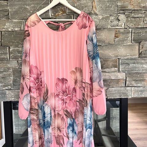 Kjole med fór. Brukt én gang. Ny pris kr 1799.