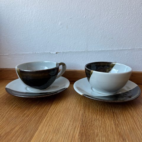 Pent brukte kaffekopper perfekt til cappuccino. Kjøpt på C. I. Pedersen.