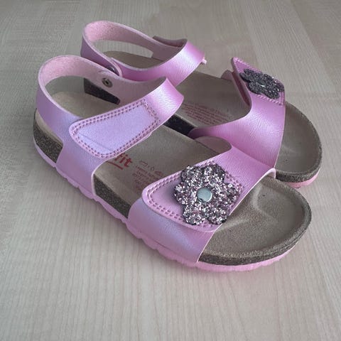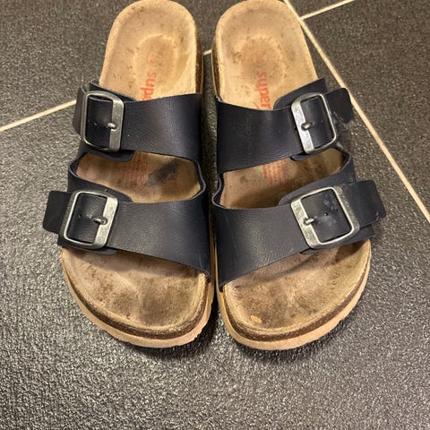Sandalene har dobbel spenne for justerbar passform. Sålen er designet for komfort og støtte, ideell for daglig bruk.