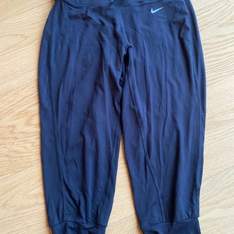 Nike Dri-FIT treningsbukse i blått for dame, størrelse M. Laget av et pustende materiale, ideelt for fitness og annen sport. Komfortabel passform med elastisk midje.
