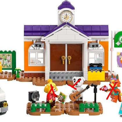 LEGO Animal Crossing lekesett med flerfargede byggeklosser. Settet inkluderer detaljerte figurer og tilbehør inspirert av det populære Animal Crossing-temaet. Perfekt for kreativ lek og bygging.