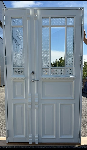 Stikkord: sveitserstil, sveitserdør, ytterdør, heltre, kopi, skreddersydd, dør, villa, klassisk, fasade, vindu, furu, dørvrider, oppussing, innerdør