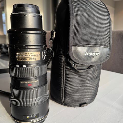 Tamron 70-200 vurderes solgt da den har sett lite bruk i mitt eie. G2 er en arbeidshest av en linse med lynrask autofokus og kraftig stabilisering. Objektivet har noen bruksmerker på kroppen (bilde 2), men linsen er plettfri (bilde 3).