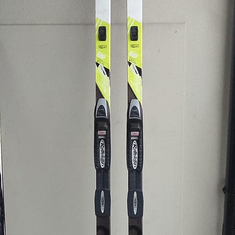 3d printet holder for et par langrennski med staver. Perfekt for oppbevaring av ski i garasje, bod og ute på husveggen.